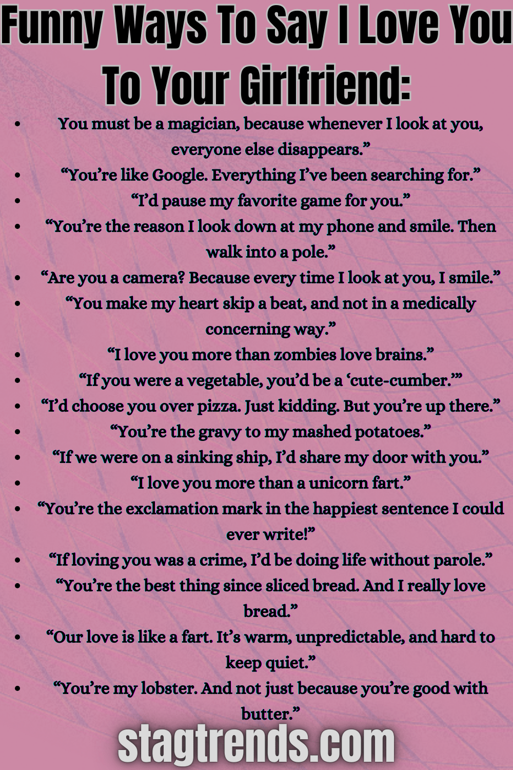 Remember to adjust and personalize these expressions based on your sense of humor and your girlfriend’s preferences. The goal is to make her laugh and feel cherished in a way that resonates with both of you.