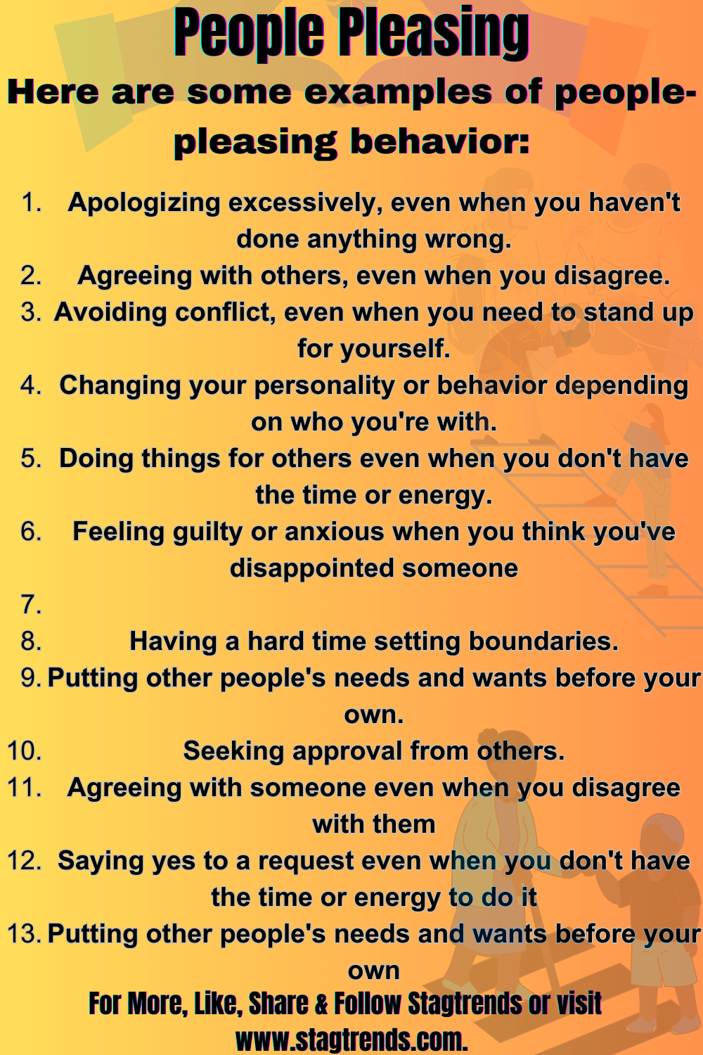 - Identify your people-pleasing tendencies. What are the things you do that you consider to be people-pleasing?