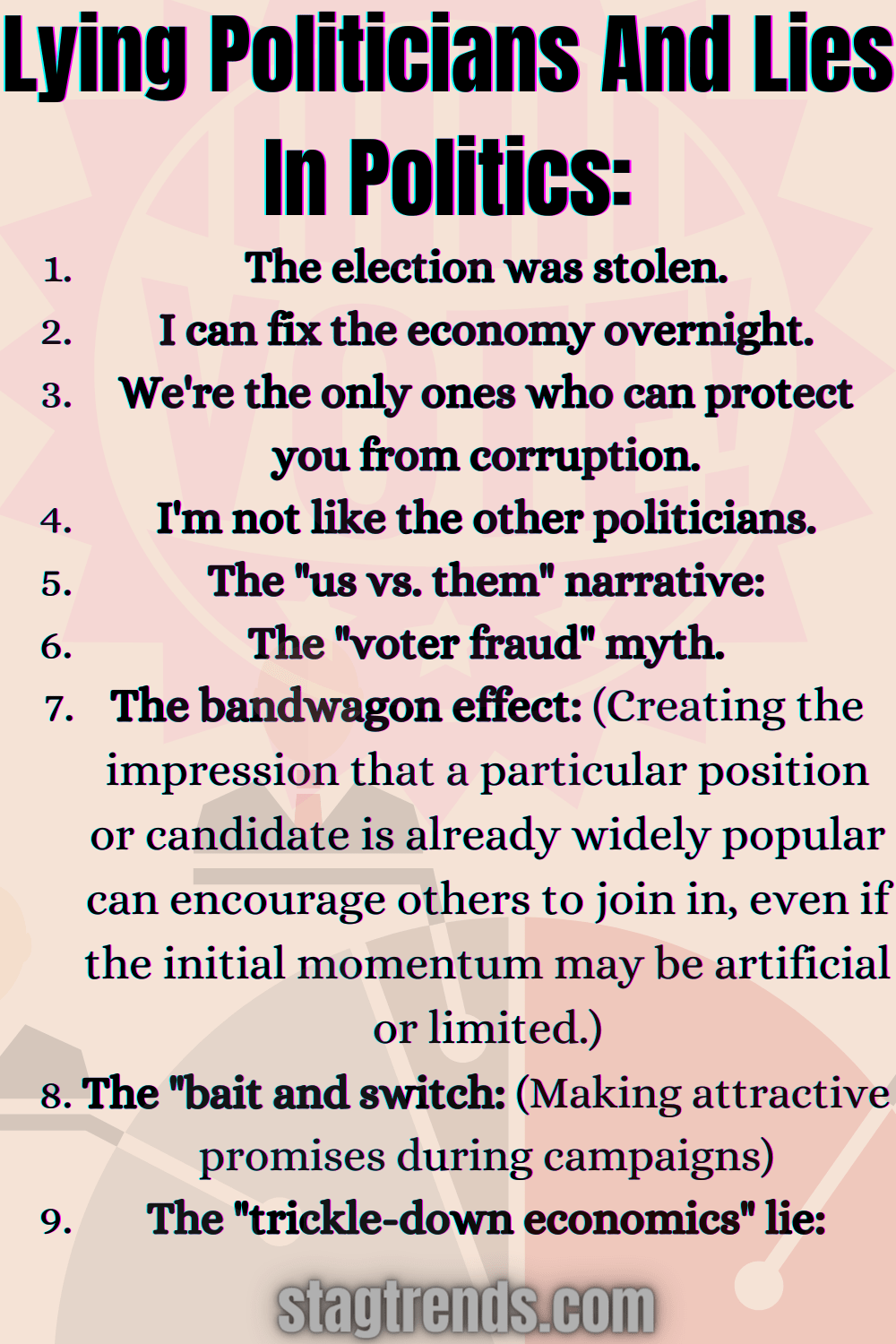 Lying Politicians And Lies In Politics. Throughout history, politicians have used deception to gain power, advance their agendas, or simply mislead the public. While some lies are quickly exposed and fade away, others can be surprisingly effective, persisting for years or even decades. Why do politicians lie?