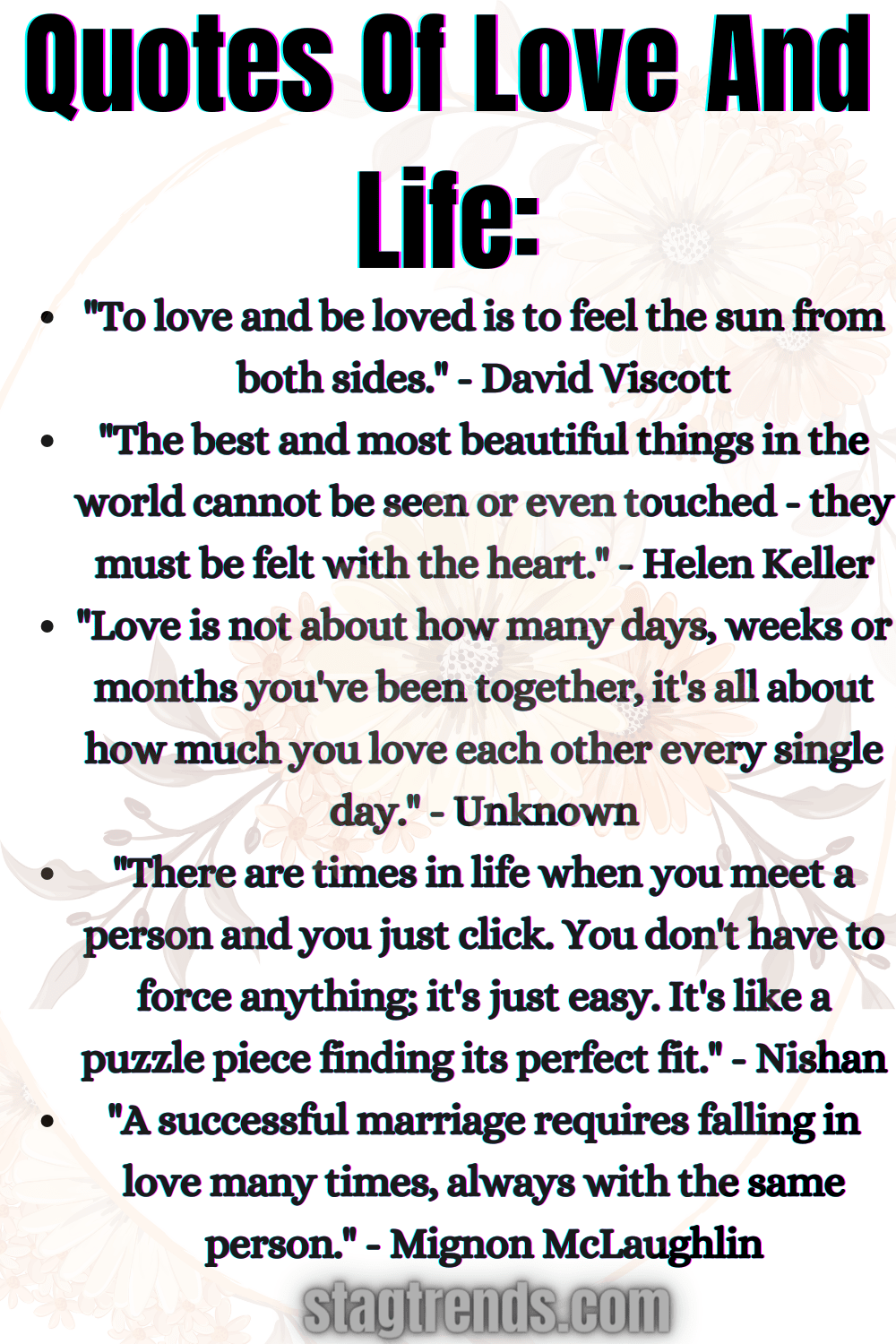 Here are some of the most beautiful and inspiring quotes about love and life: